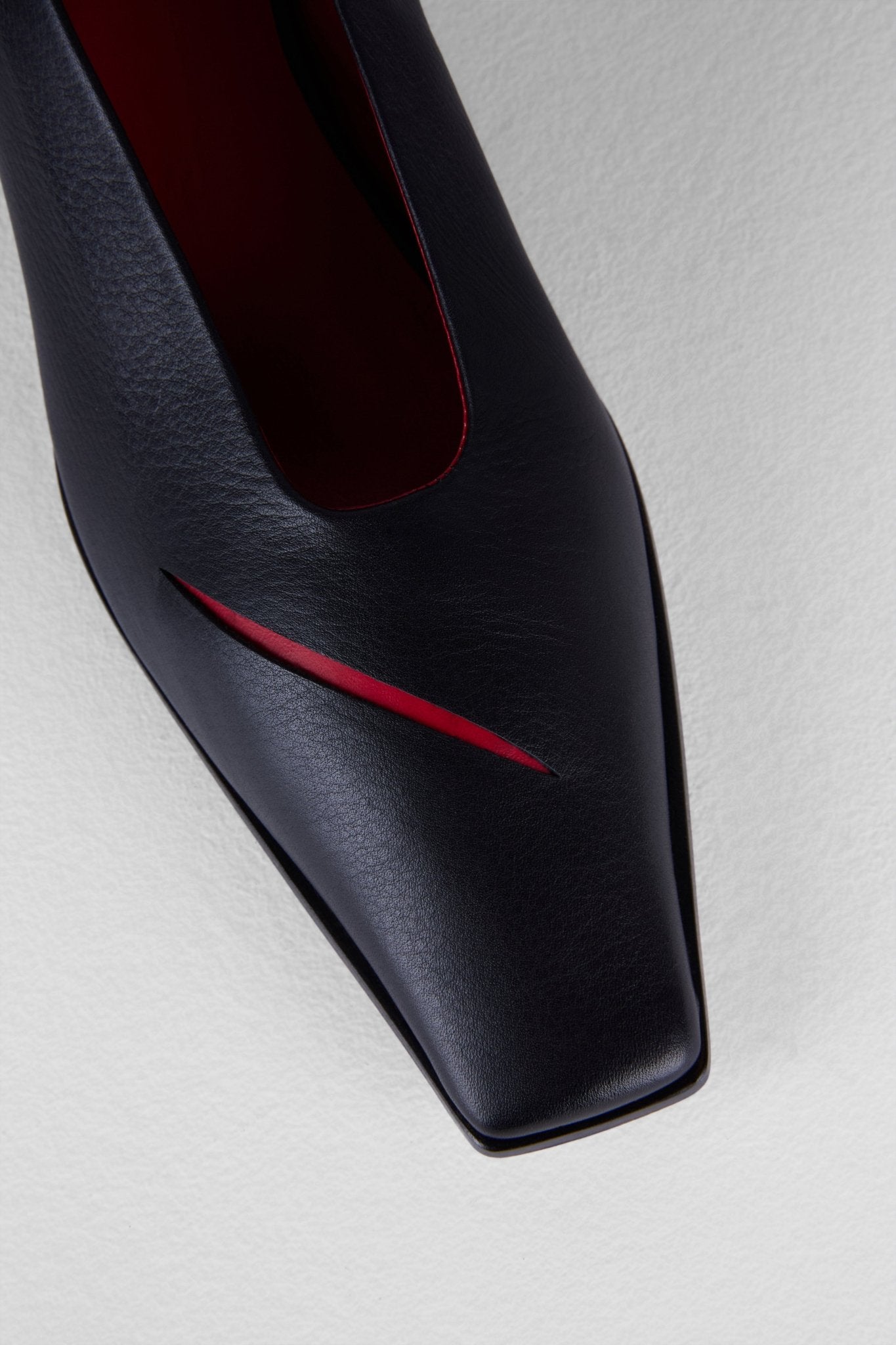 Le Spacco Pumps sono la tua prossima scarpa unica. Presentano un taglio intenzionale sulla parte superiore in pelle e un tacco triangolare, che donano carattere e comfort. La scollatura arrotondata e lusinghiera contrasta con la punta quadrata e appuntita, permettendo molteplici opzioni di styling.