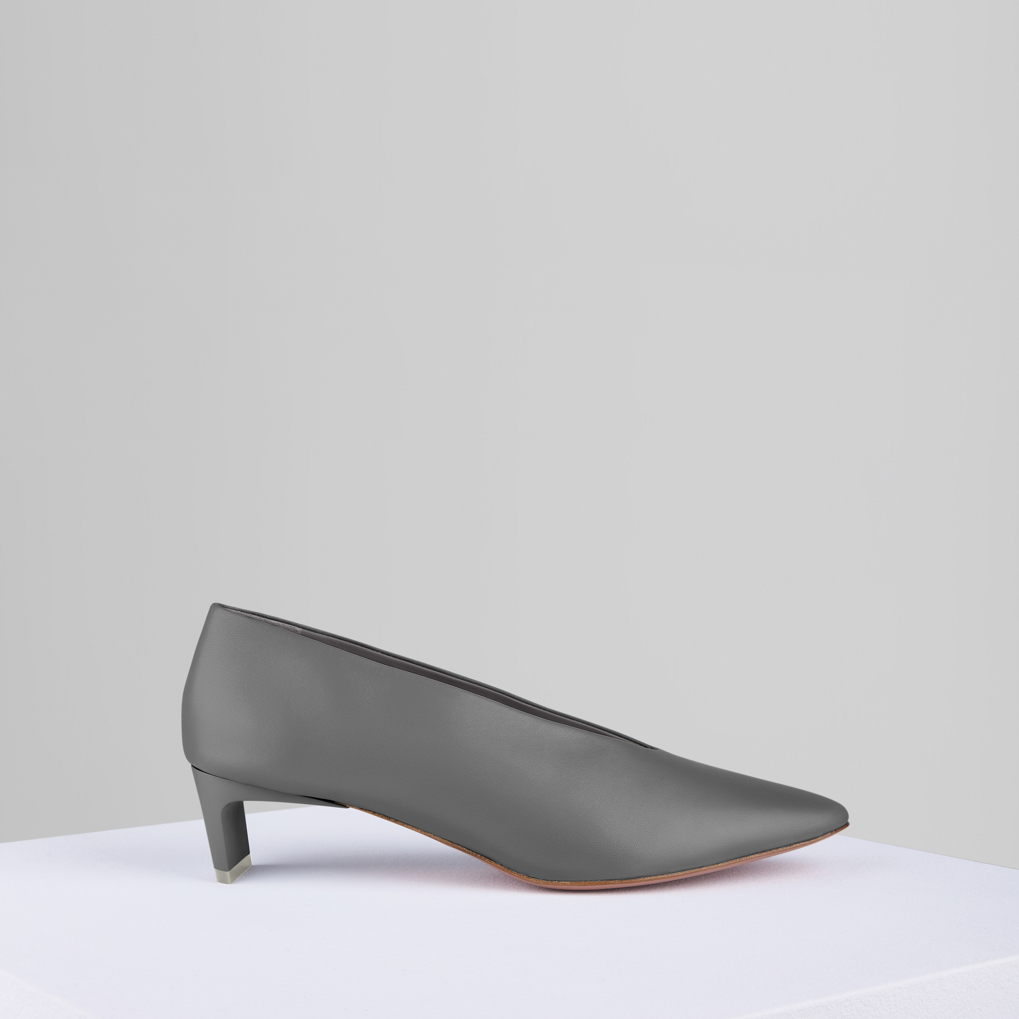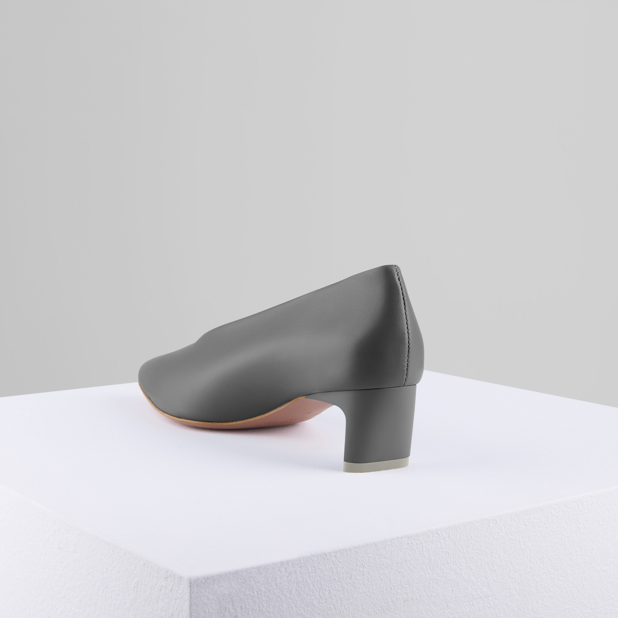 柔らかなのナッパワックスレザーで作られた深いV字型の先のとがったフラットヒール。裏地のない内側はグローブのような感触を与えます。パッド入りのインソールには新しいピンクのマットソールとヴァンプが装備されています。 カスタムマットペイントのフラットシェイプヒール。
